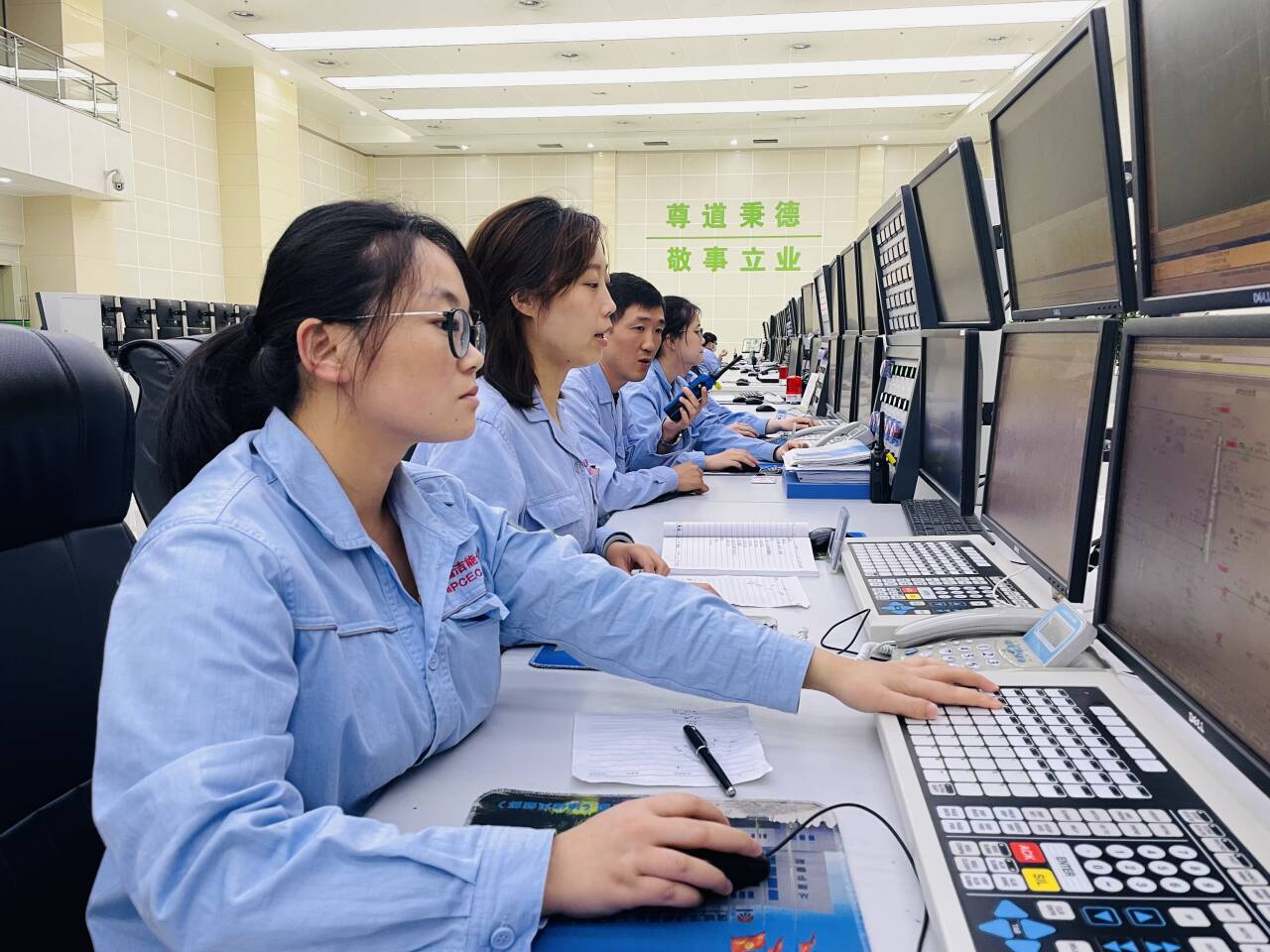 本次年度计划性检修,MTO第一再生器旋风分离器的修复、内取热器管线更换,是烯烃中心的重点检修项目。为保障检修完成后顺利开车,该中心及时抽调精兵强将组建开车队,将人员划分成工艺、设备、安全环保、后勤保障四个工作组,组织人员对照开车方案进行全流程检查复核,重点针对装置检修过程中更换疏通的工艺管线、补焊修复的塔罐机泵完整性进行检查。经过与分析、电气、仪表、设备等相关专业完成开车条件确认,15日19时,在确定主风机、反应气压缩机、丙烯压缩机、水系统三塔水联运稳定,均具备产品气接气等条件后,中控主操向调度申请,按计划正式引原料甲醇入MTO装置。“关闭开工加热炉。”“关闭辅助燃烧室燃料气。”在工艺工程师精准的指令下,岗位主、副操紧密配合,响应果断,历经20小时鏖战,顺利打通MTO及烯烃分离全流程。