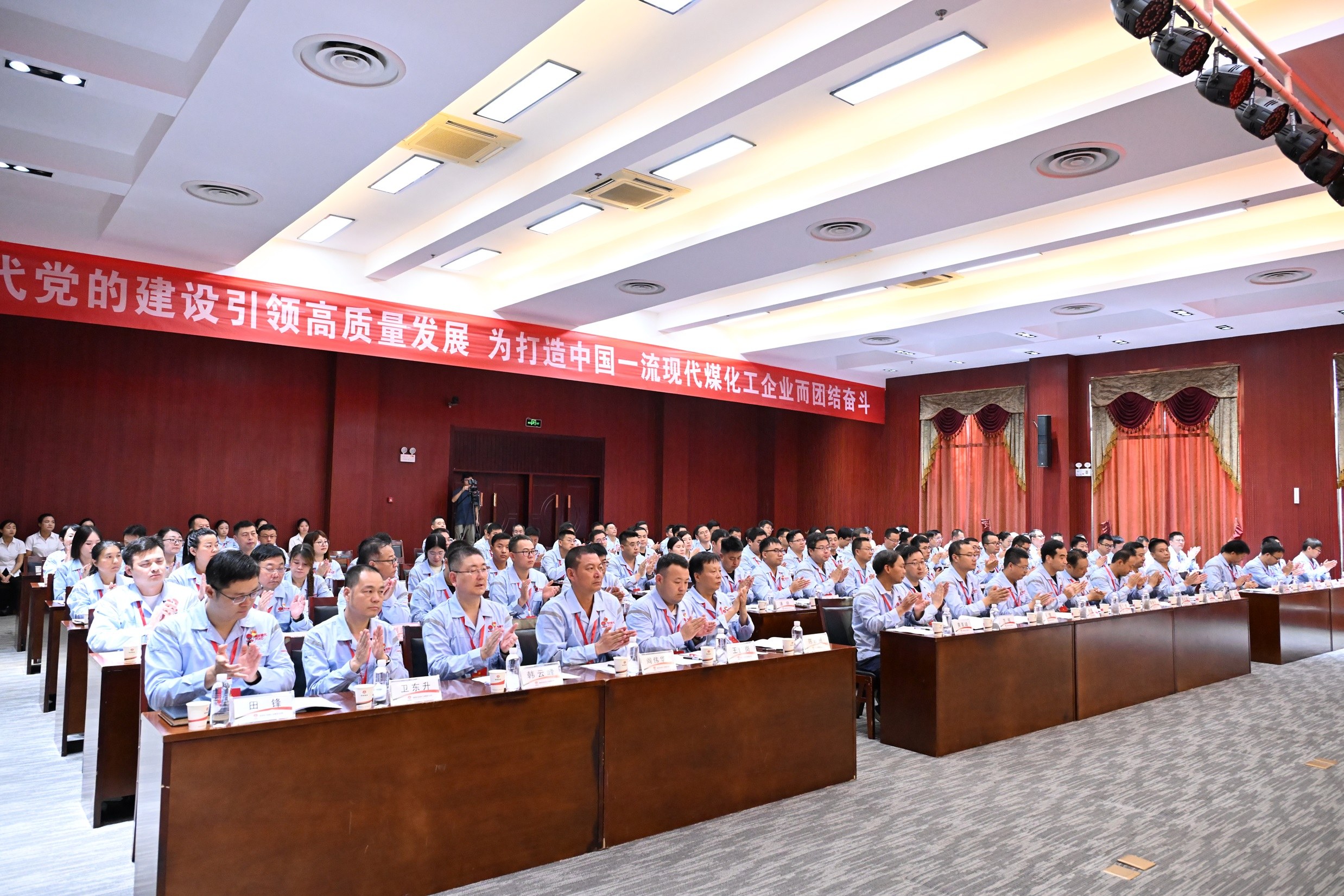 本次大会的主题是:高举习近平新时代中国特色社会主义思想伟大旗帜,深入贯彻党的二十大和二十届二中、三中全会精神及习近平总书记系列重要讲话精神,全面回顾第一次党代会以来的工作,精准判断当前形势,科学擘画发展蓝图,选举产生公司新一届党的委员会和纪律检查委员会,进一步统一思想、凝聚共识、汇聚力量,为打造中国一流现代煤化工企业,推动新时代蒲洁能化高质量发展而团结奋斗。