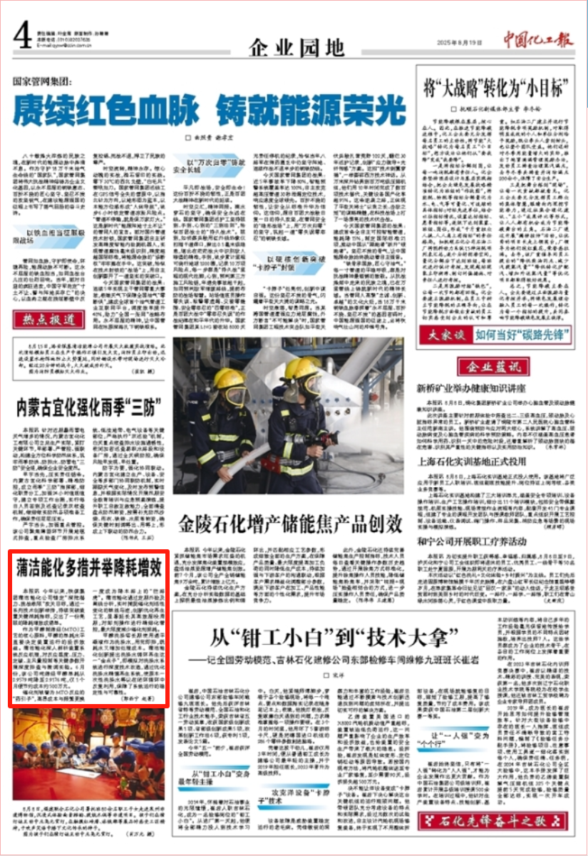 中国化工报:蒲洁能化多措并举降耗增效