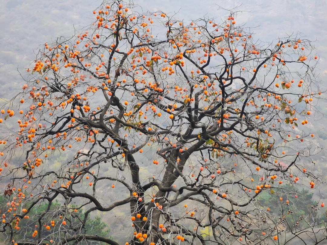 周末,天空阴沉沉的,像是被一块巨大的灰色幕布笼罩着,但这丝毫没有影响我和母亲带着女儿去乡下老柿子树上摘柿子的兴致。